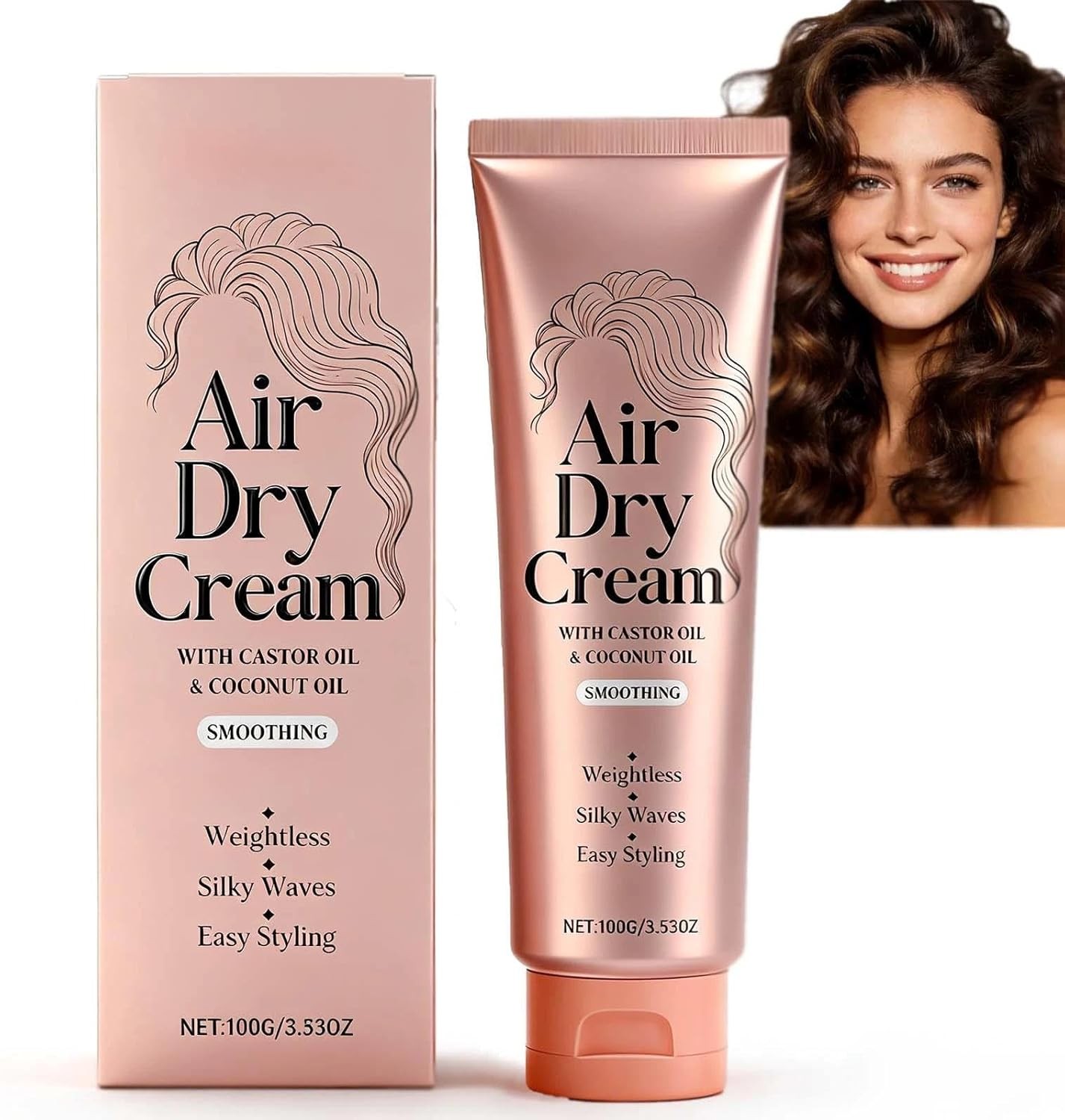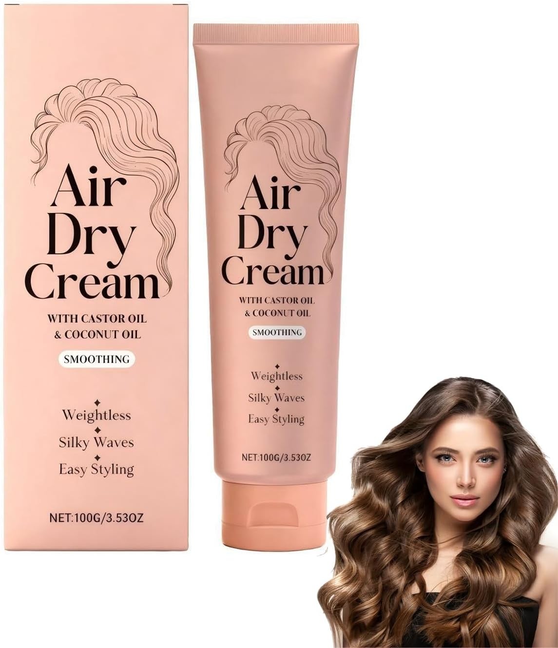 Air Dry Hair Cream with AntiFrizz Technology, No Heat Styling for Curly, Wavy and Straight Hair