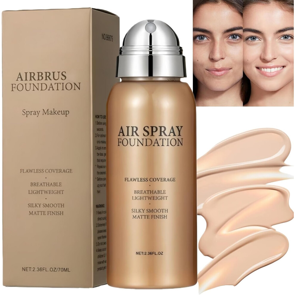 AirBrush Foundation Spray, Full Coverage Powder Foundation for Mature Skin Cream to Powder Makeup with Brush, Moisturizing&Lightweight for Dry Skin