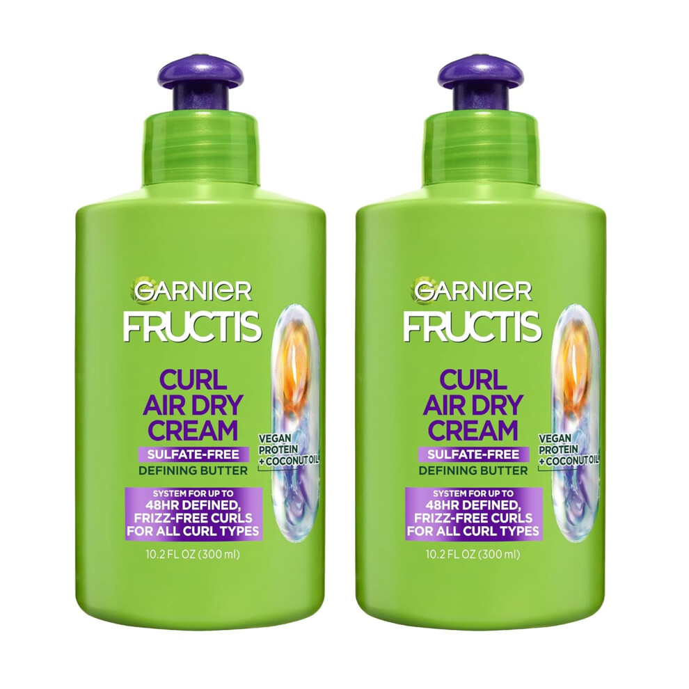 Garnier Fructis Curl Nourish Air Dry Cream Sulfate Free Defining Butter Leave-in Conditioner 10.2 Fl Oz 2 Count (Packaging May Vary)