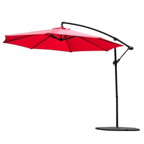 Harrier Overhanging Cantilever Parasol Umbrella [5 Colours] | Optional Base Weights & Cover Available - Perfect for Gardens, Patios and Decking (Red, Parasol Only)
