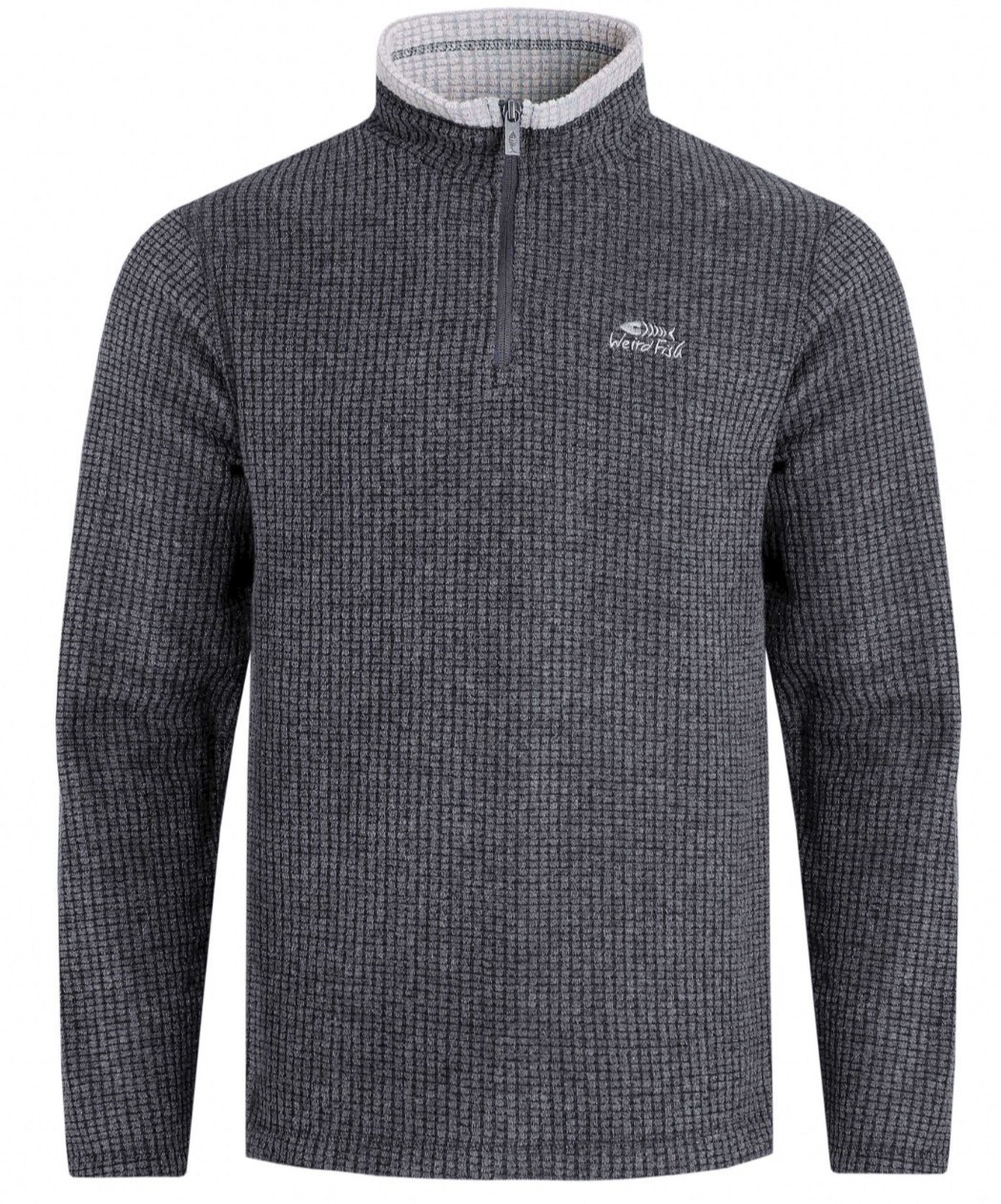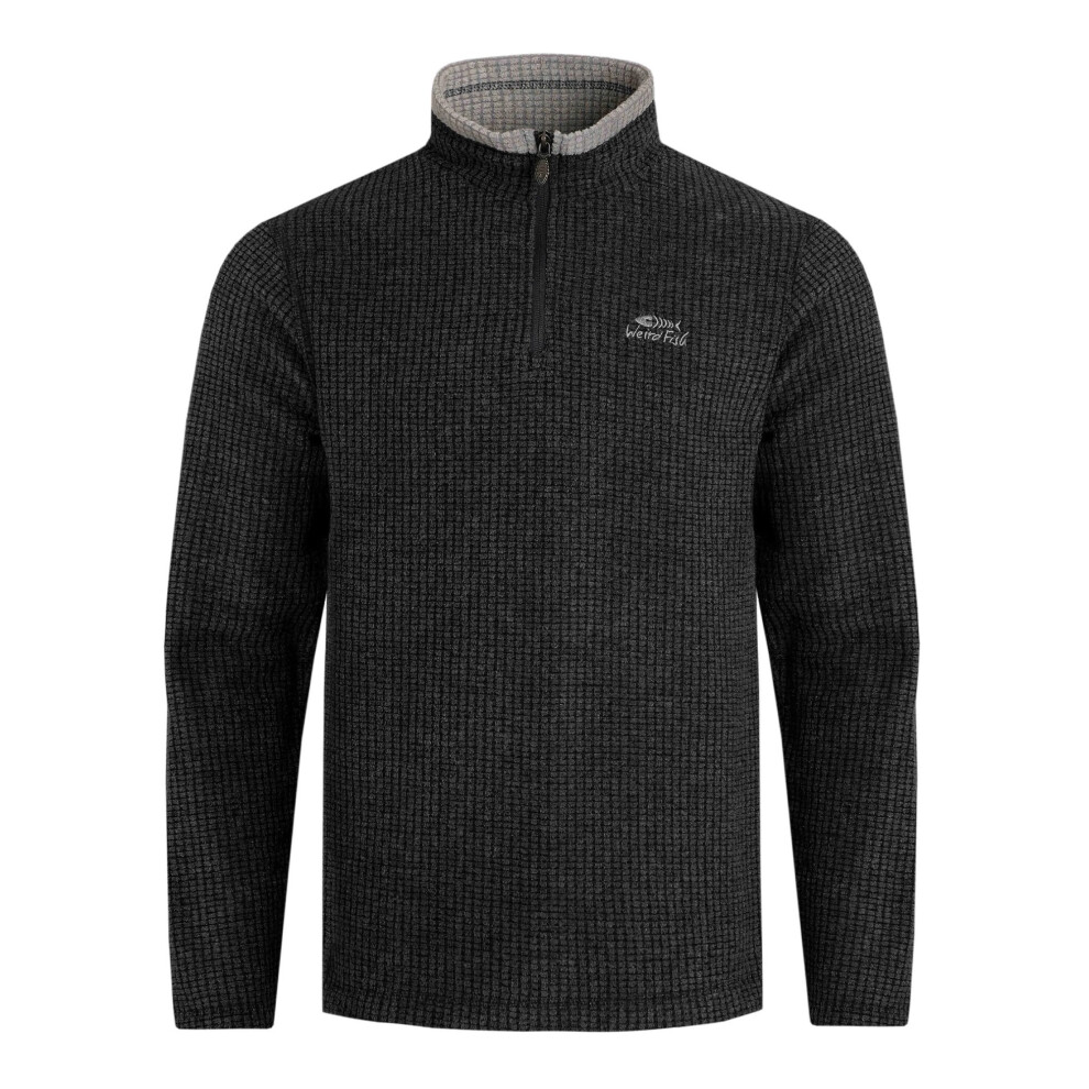 (L, Washed Black) Weird Fish Mens Newark Grid Eco Friendly Quarter Zip Fleece Top