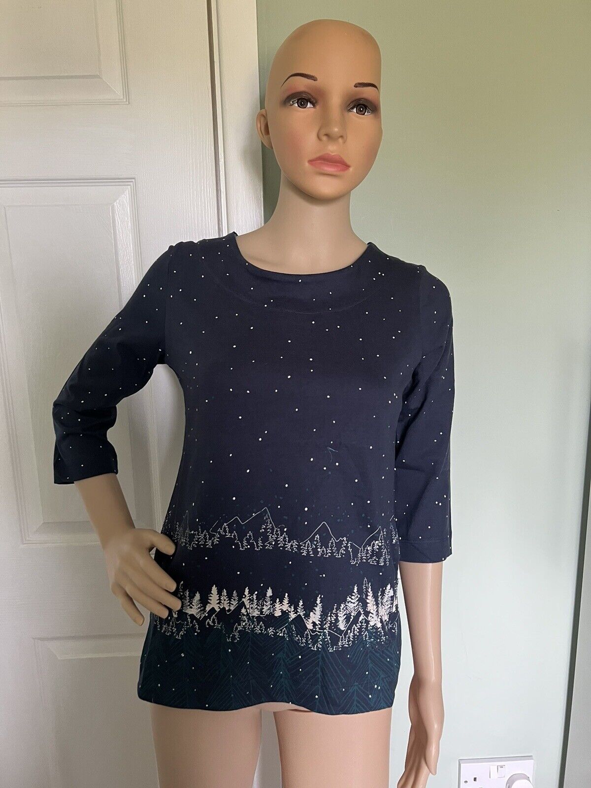 Weird Fish Organic Cotton Print 3/4 Sleeve Top Size 10 Mid Blue