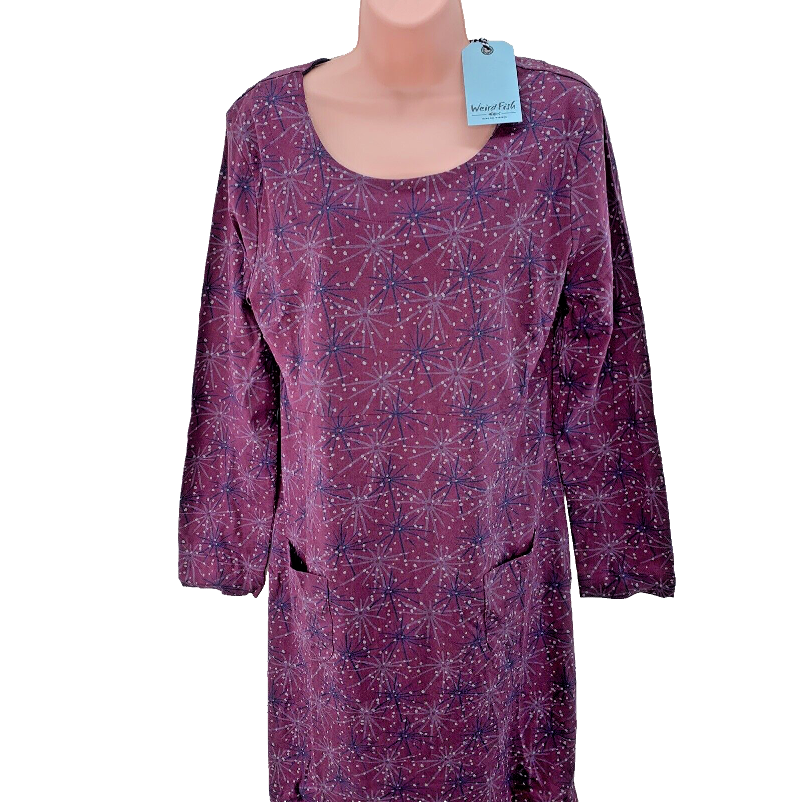 Weird Fish Delray Midi Dress, Organic Cotton Long Sleeve Size UK 14 Violet