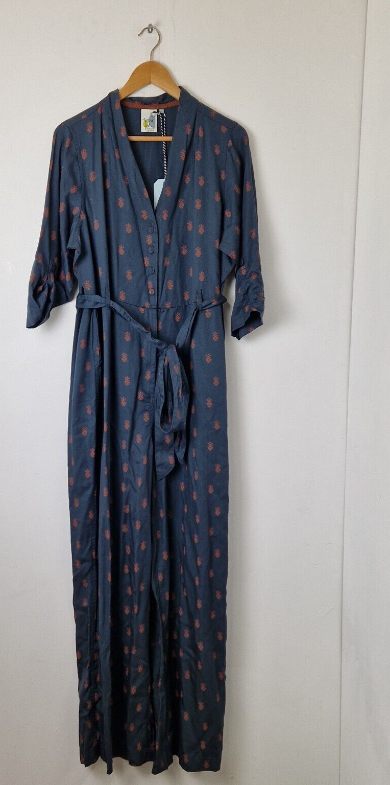Weird Fish 'Wanda' Longline Navy Floral Print Half Sleeve Jumpsuit BNWT UK 20