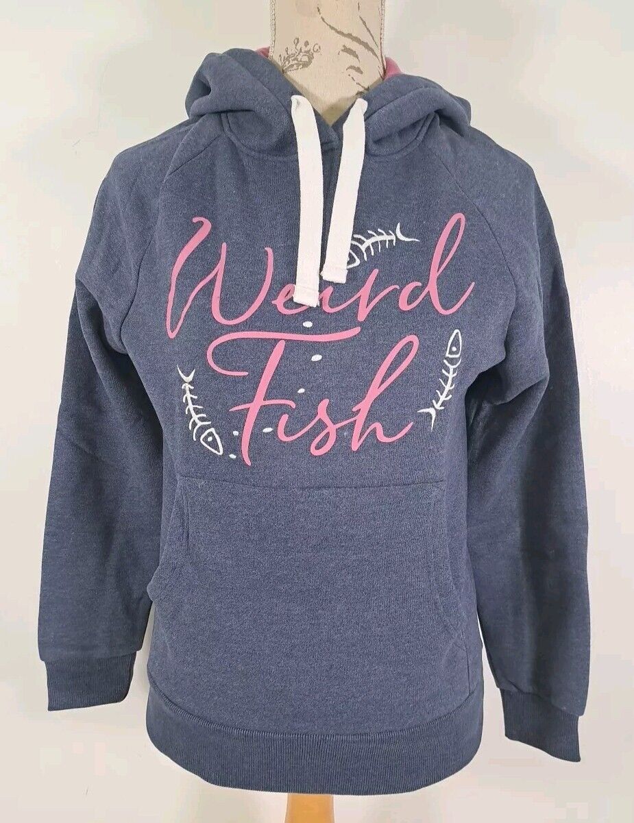 WEIRD FISH Anya Hoody Popover Branded Hoodie Long Sleeve Dark Navy Pink NEW UK 8