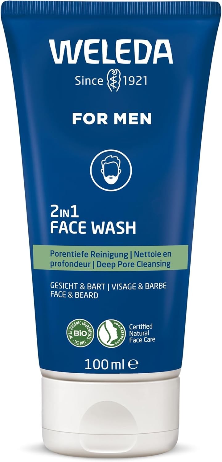 Weleda 2-in1 Face Wash for Men, Face & Beard, Mens Gentle Deep Pore Cleansing,