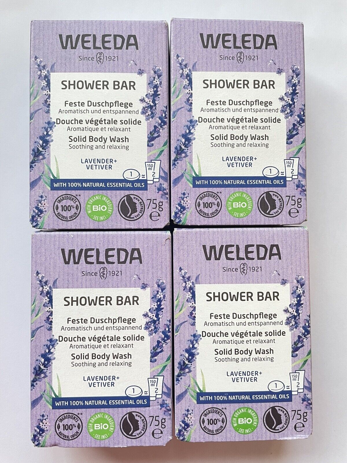 4 X Weleda Organic Shower Body Wash Lavender + Vetiver Soap 75g