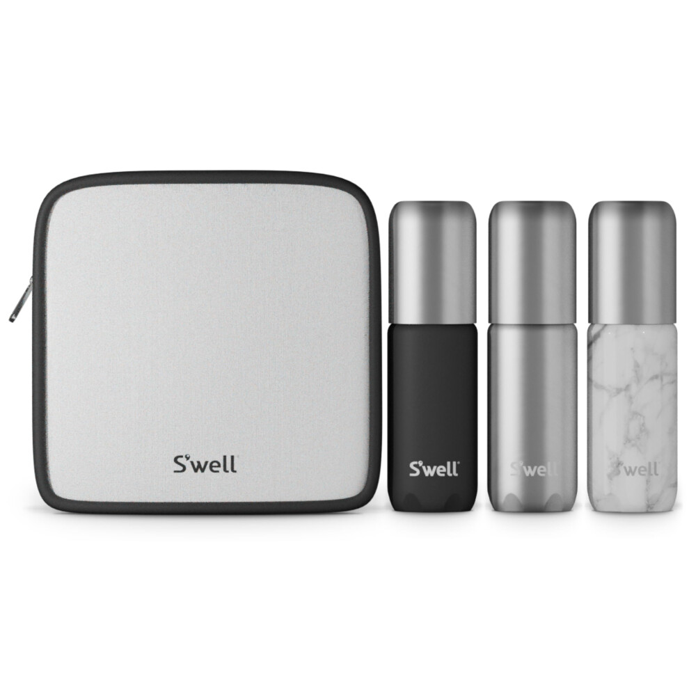 S'well 3.4oz Travel Bottle Set Includes 3 Lightweight and Recyclable Aluminum Bottles Leakproof Pumps For Shampoo Conditioner Body Wash Lotions