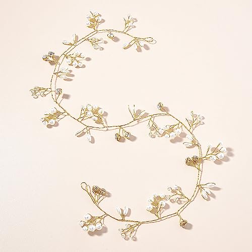 TARSHYRY Pearl Hair Accessories, Pearl Headband 50cm,resistant and Not Easy to Fade Well Attached to the Hair Flower Crowns For Women For Various Scenes, For Bridal, Wedding, Dance (Gold)