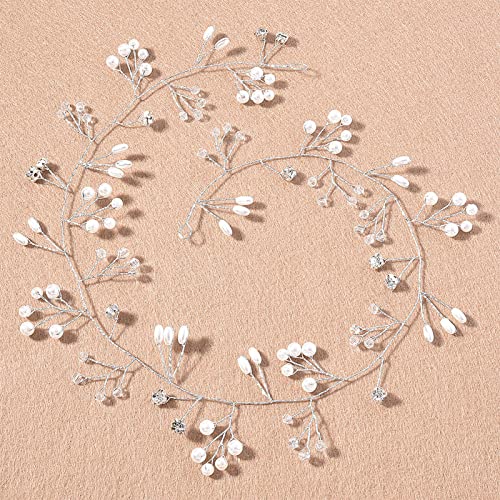 TARSHYRY Pearl Hair Accessories, Pearl Headband 50cm,resistant and Not Easy to Fade Well Attached to the Hair Flower Crowns For Women For Various Scenes, For Bridal, Wedding, Dance (Silver)