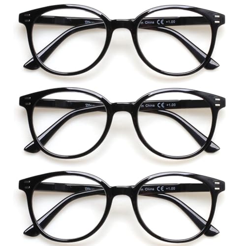 VisiWell 3 Pack Reading Glasses for Women and Men Spring Hinge Stylish Readers Black/Tortoise Readers for Men and Women (Black, 2.50, Dioptres)