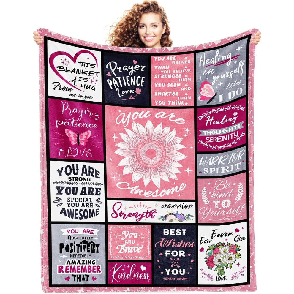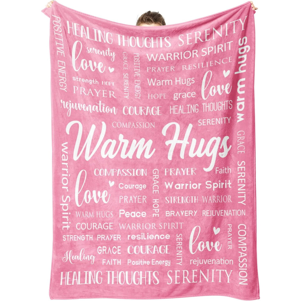 Warm Hugs Healing Blanket 50x60 Pink Soft Throw for Breast Cancer Gifts Women Get Well Soon Inspirational Blanket Friend
