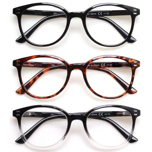VisiWell 3 Pack Reading Glasses for Women and Men Spring Hinge Stylish Readers Black/Tortoise Readers for Men and Women (Mix Color, 2.50, Dioptres)