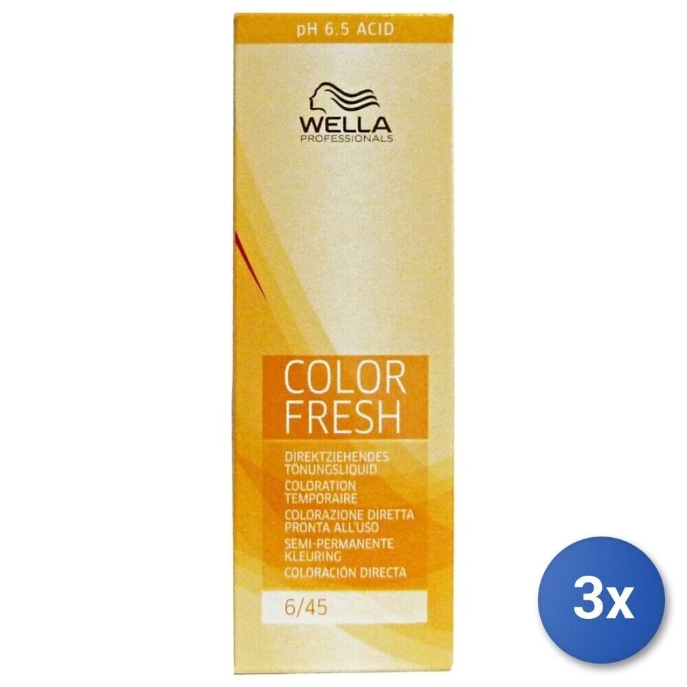 3x Wella Color Fresh 6/45 Dark Blonde/Red Red-Violet 75ml