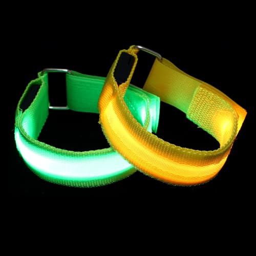 Veemoon 2pcs Yellow LED Luminous Armband and Ankle Belt, Fluorescent Safety Signal Light for Night Running and Outdoor Sports, Reflective Glowing Wristbands for Enhanced Visibility