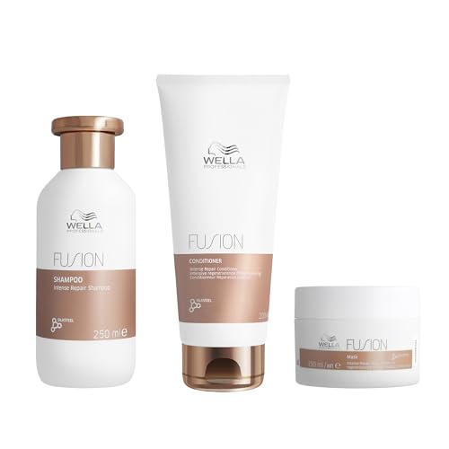 Wella Professionals Deep Repair Professional Hair Care Regime for Dry & Damaged Hair, Fusion Intense Repair Shampoo 250ml, Conditioner 200ml & Hair Mask 150ml Bundle