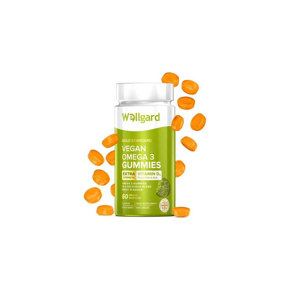 Vegan Omega 3 Gummies by Wellgard - Chewable Algae-Derived DHA & ALA, Omega 3 Supplements, Allergen-Free, Natural Flavour, Formulated in UK