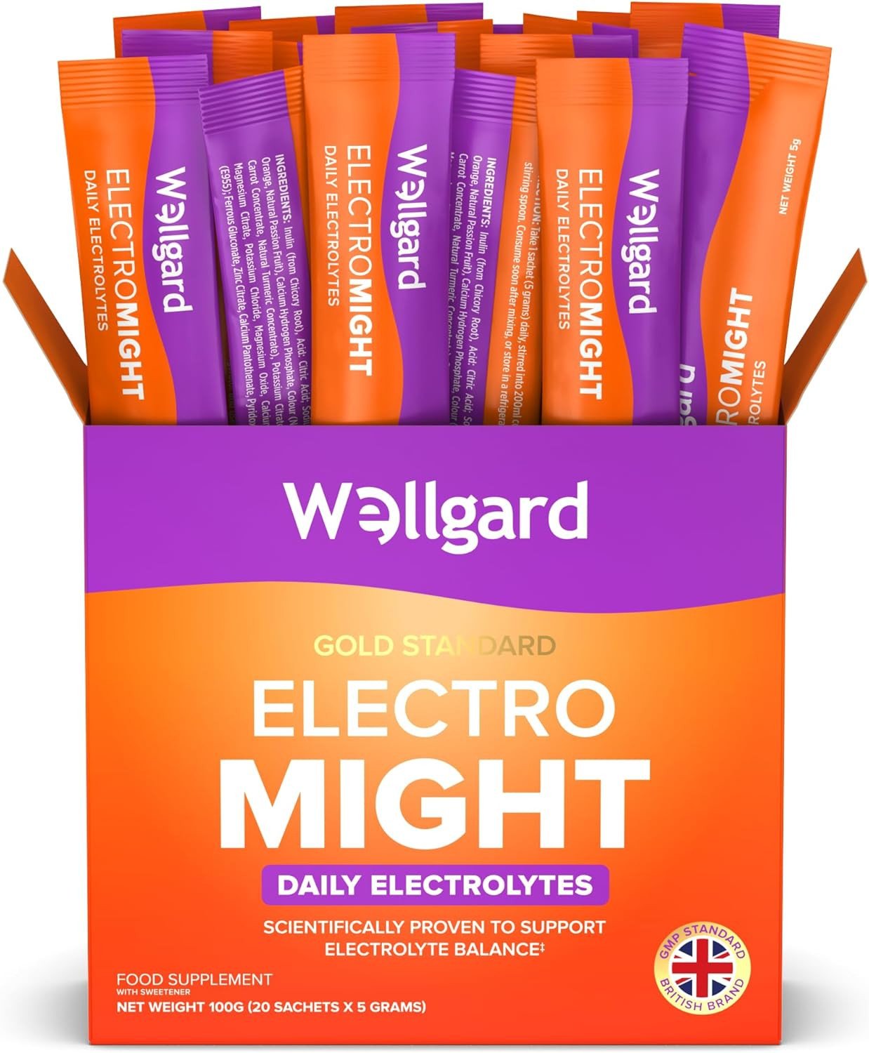 Wellgard Electromight - Advanced Electrolytes Sachets with Magnesium, Iron & Vitamin C, Energy & Muscle Function Supplement, 20 Sachets
