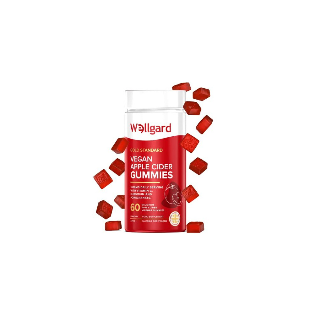 Wellgard Vegan Apple Cider Vinegar Gummies, Gold Standard 1000mg ACV Gummies with Vitamin C, Chromium and Pomegranate, Non-GMO, Gluten-Free & Gelatine-Free