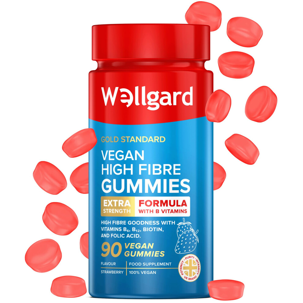 Vegan High Fibre Gummies Wellgard â High Strength Fibre Gummy Vitamins Bâ, Bââ, Biotin, and Folic Acid, Strawberry Flavour, UK Formulated