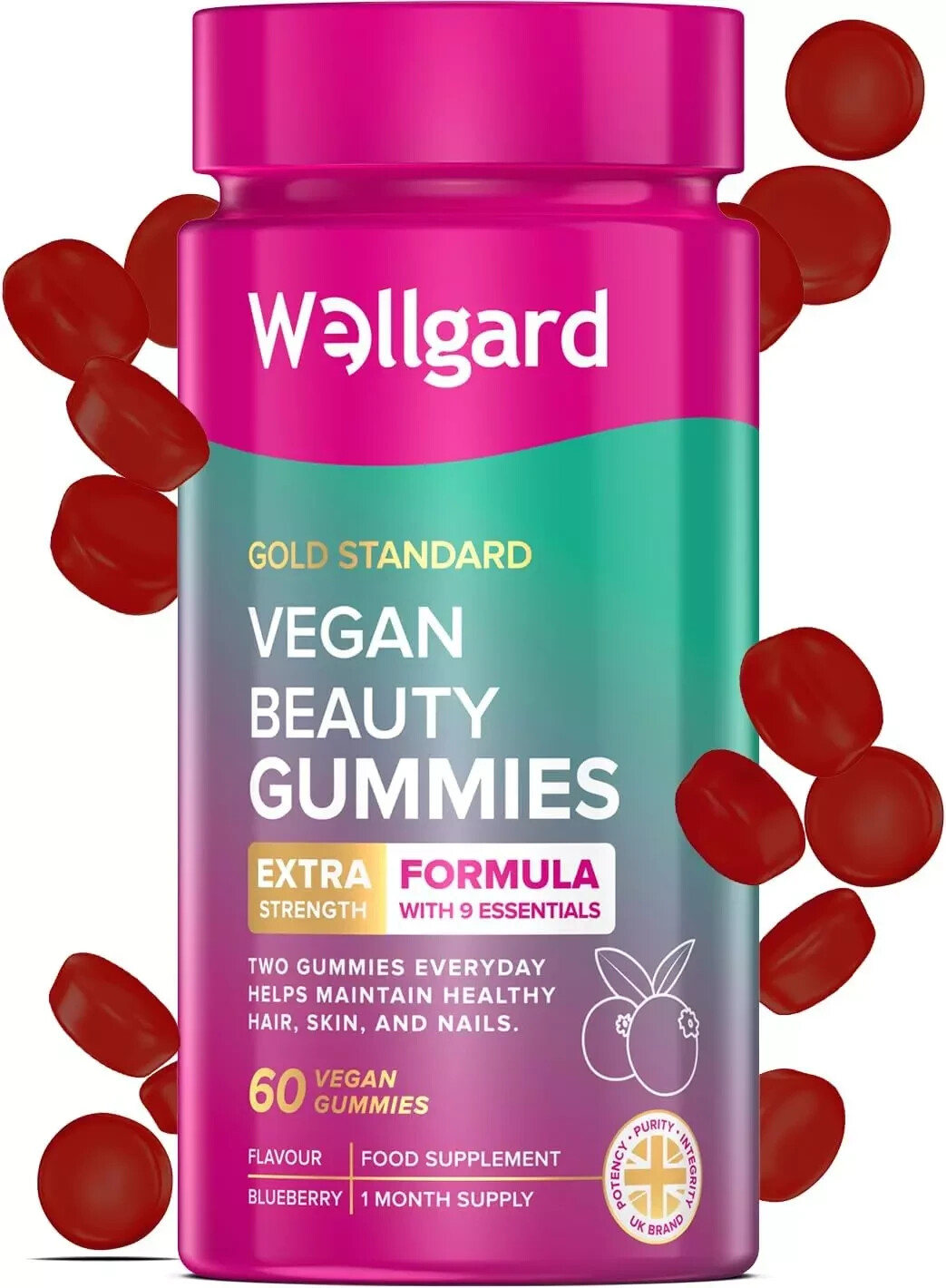 Wellgard Vegan Beauty Gummies with Biotin, Zinc, Vitamin A for Hair Skin Nails 6