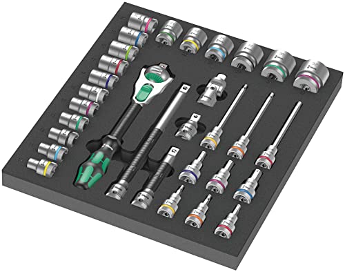 Wera 05150111001 9721 Foam Insert 8000 B Zyklop 3/8" Ratchet Set 1, 23 Pieces, Black-green