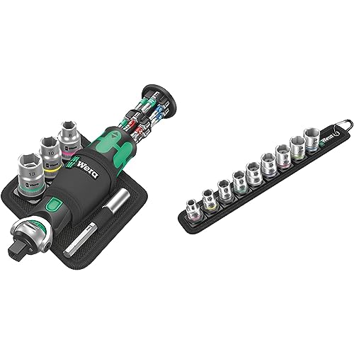 Wera 05004281001 8009 Zyklop Pocket Set 2, Ratchet Set, 18 Pieces Black-green & Belt B 4 Zyklop socket set, 3/8" drive, 9pc, 05003973001