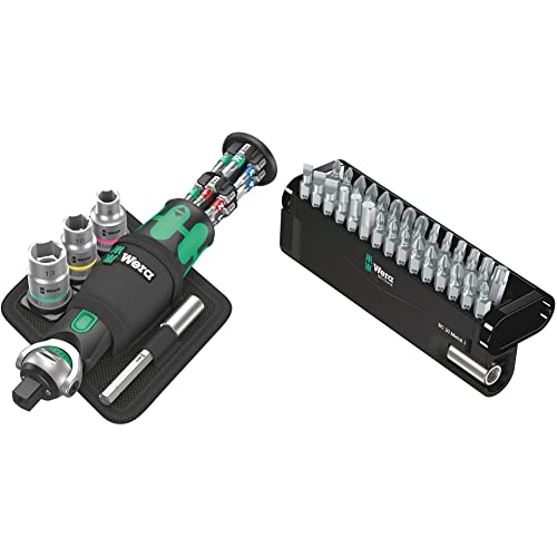 Wera 05004280001 8009 Zyklop Pocket Set 1, Ratchet Set, 13 Pieces, Black-Green & Tool-Check Plus Mini Bit Ratchet, Socket, Screwdriver & Bit Set, 39pc, 05056490001