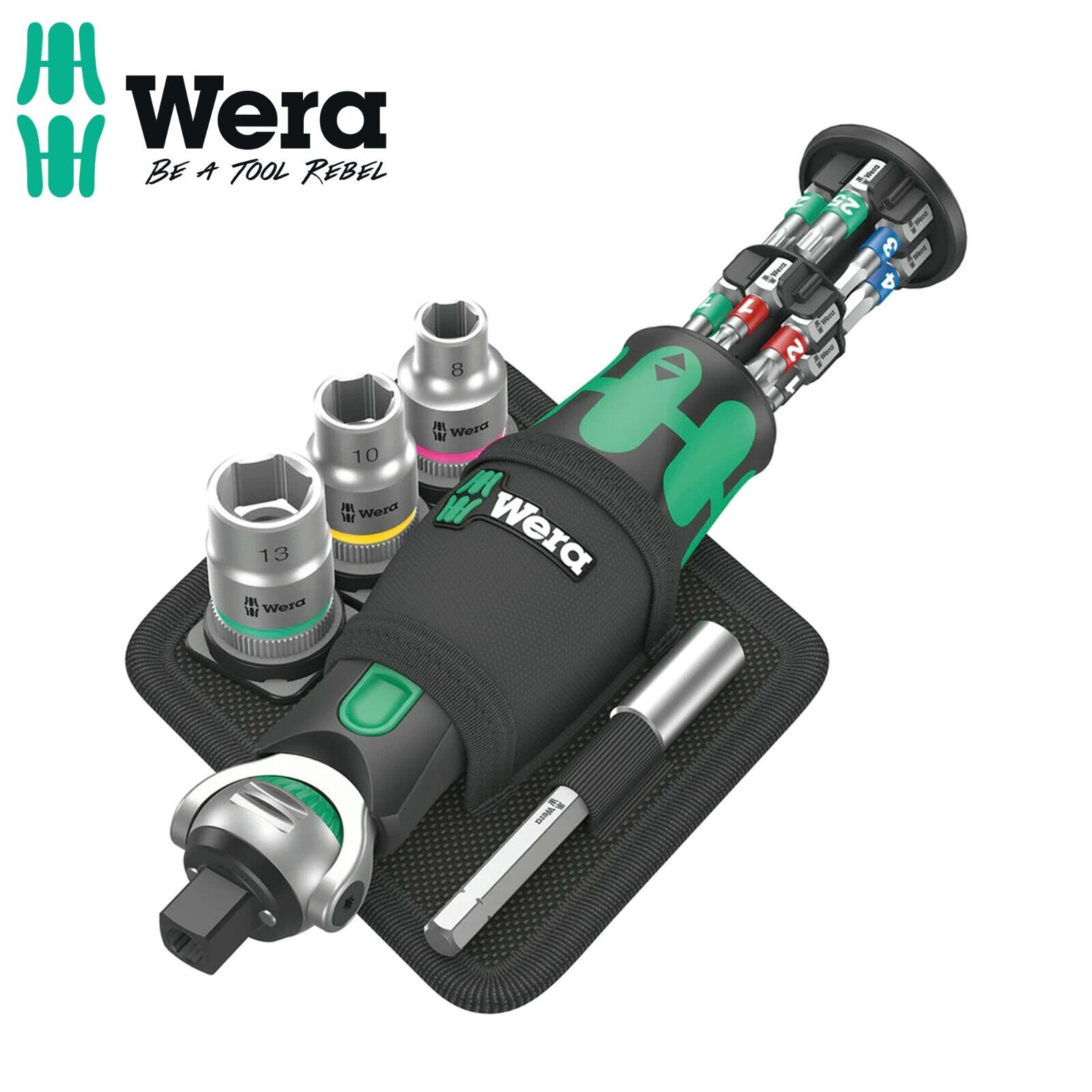 Wera 8009 Zyklop Pocket Set 1, Ratchet Set 13 Piece Bit Set 3/8''Sq & 1/4'' Hex