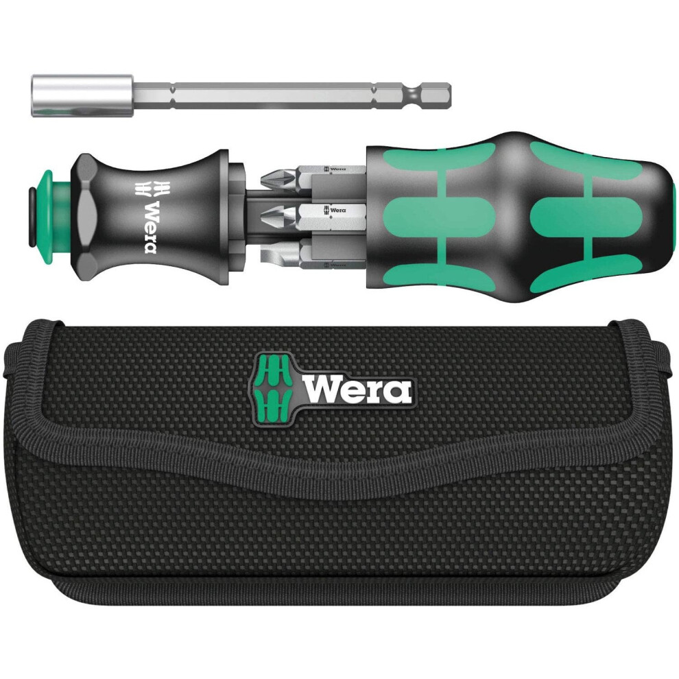Wera Compact Tool Set Kraftform 20" with Pouch, SL/PH/PZ, 7 Pieces, Silver & 05051461001 1/4 x 142 816 RA Ratchet Screwdriver - Silver
