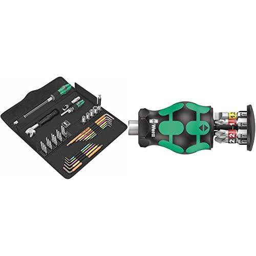 Wera Kraftform Kompakt Multi-Function Zyklop Speed Ratchet, Socket & Bit Set, 1/4", 26pc, 05051045001 & Compact Tool Set Kraftform 20" with Pouch, SL/PH/PZ, 7 Pieces