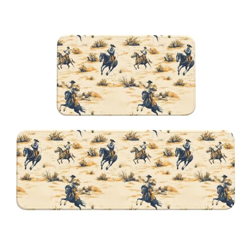 TZTTZT Antifatigue Kitchen Mats for Floor 2 Piece - Western Cowboy A Print Kitchen Rugs Non Slip Washable, Runner Rug Standing Mat for Office/Laundry/Bathroom/Home Decor and Accessories