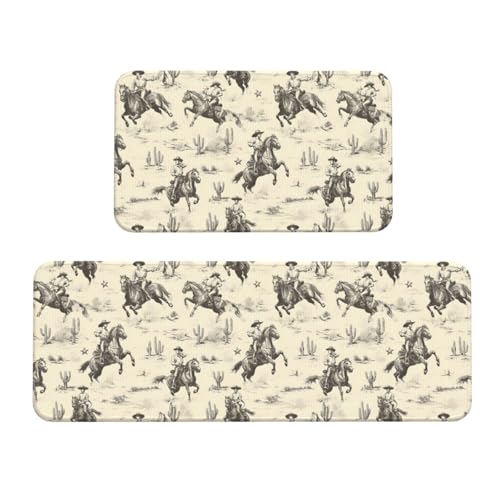 GVYGVY Antifatigue Kitchen Mats for Floor 2 Piece - Western Cowboy A Print Kitchen Rugs Non Slip Washable, Runner Rug Standing Mat for Office/Laundry/Home/Bathroom Decor and Accessories