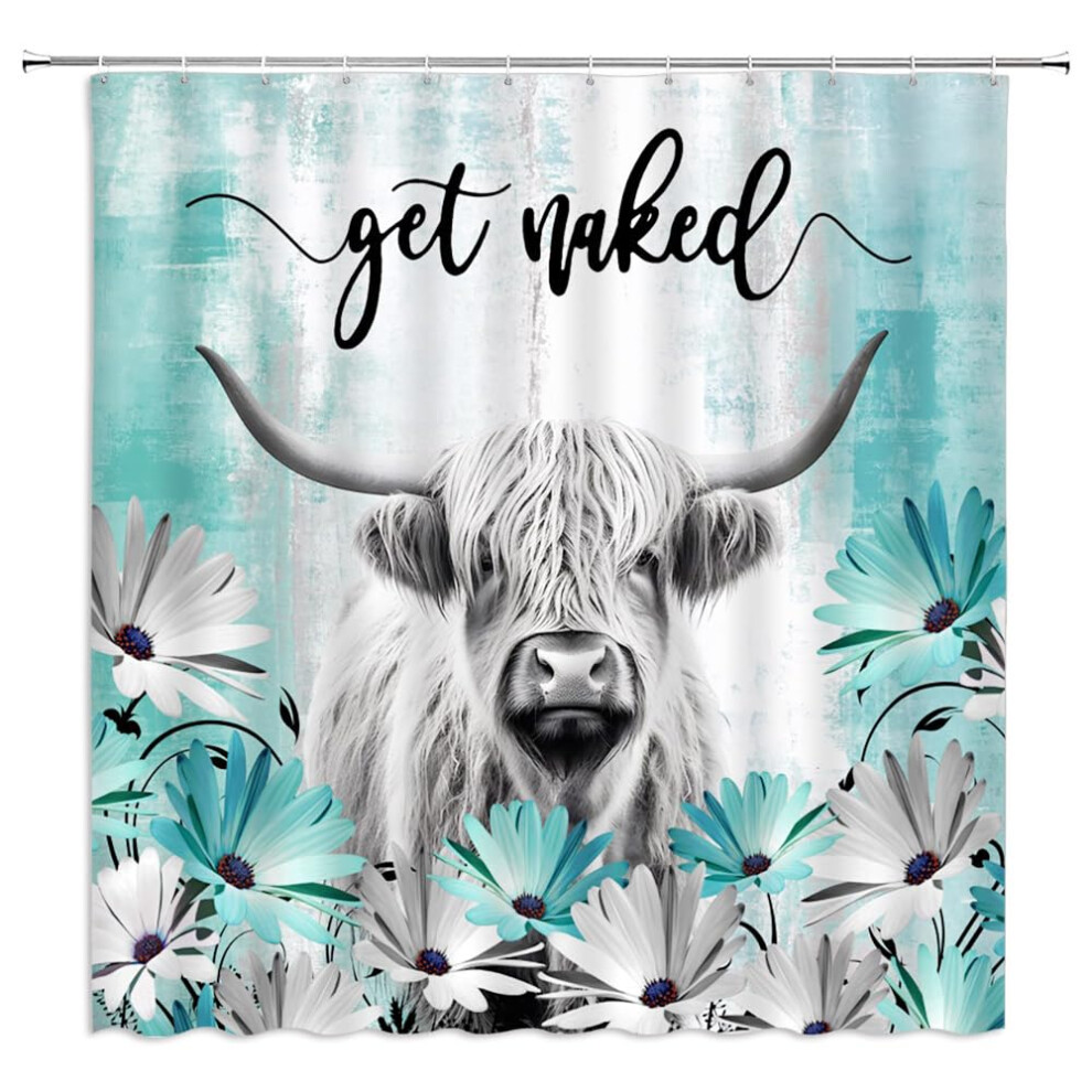 ZWSMZW Highland Cow Shower Curtain Grey Rustic Cattle Bull Western Wild Animal Get Naked Country Farmhouse Funny Cabin Bathroom Decor Fabric Curtains with Hooks