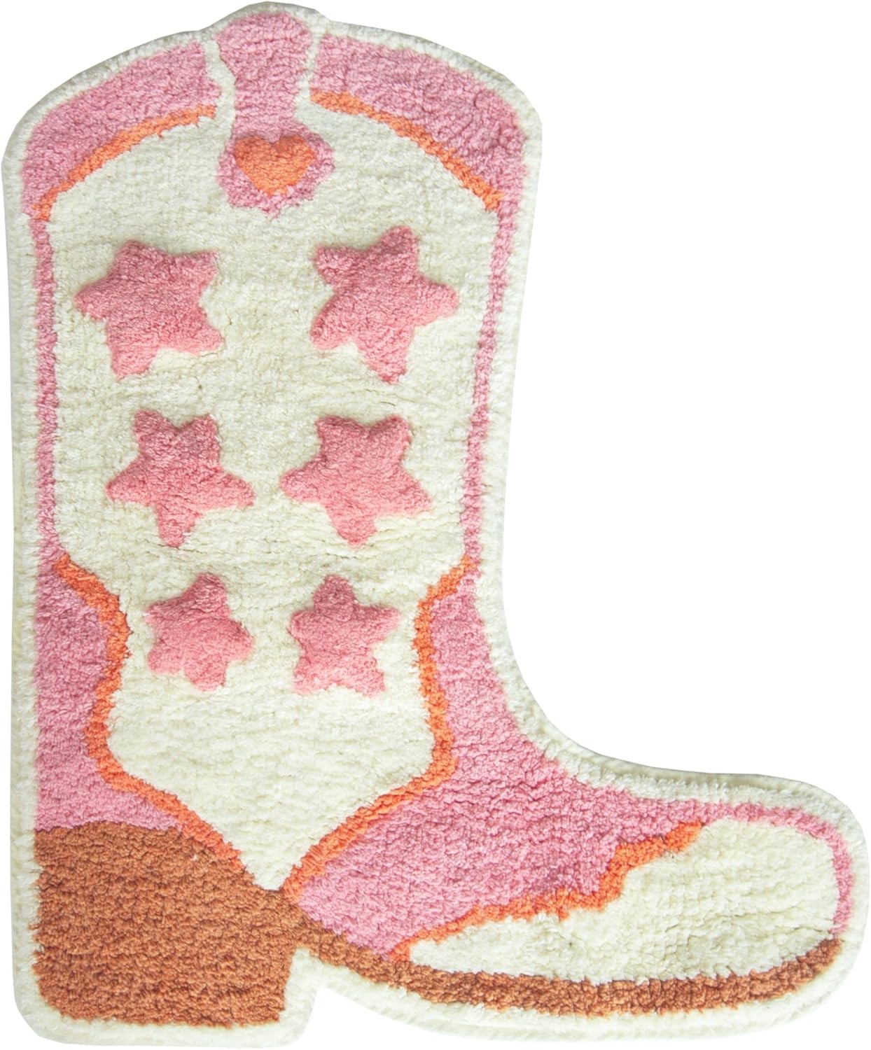 Sass & Belle Cowboy Boot Tufted Bath Mat – Western Theme Bathroom Mat Rug –