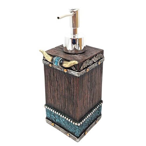BestGiftEver Southwestern Soap Dispenser - Cowboy Bathroom Accessories - Faux Horns and Tooled Leather-Inspired Soap Pump - Native Indian Home Decor - Western Bathroom Decor Rustic Lotion Dispenser
