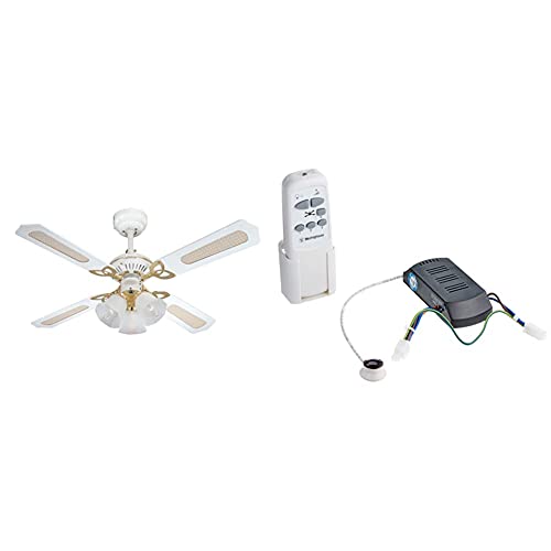 Westinghouse Infrared Remote Control, White with Princess Trio Ceiling Fan, White/Oak Cane