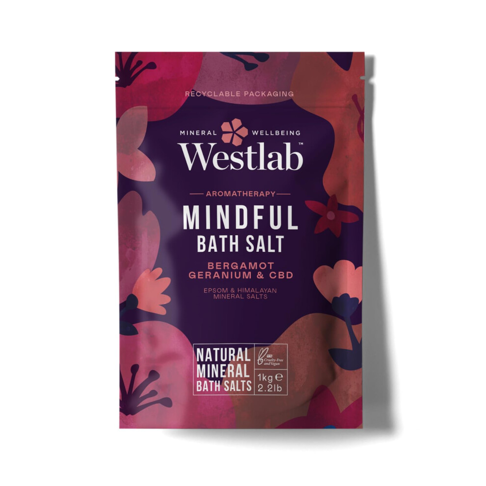 Westlab Mindful CBD Bath Salts 1kg - Epsom & Himalayan Salts Infused with Bergamot, Geranium for Calming and Soothing, Guaranteed Purity.