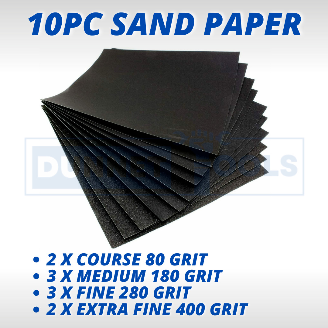 10 QUALITY WATERPROOF SHEETS WET AND DRY SANDPAPER PAPER 60 120 180 400 GRIT