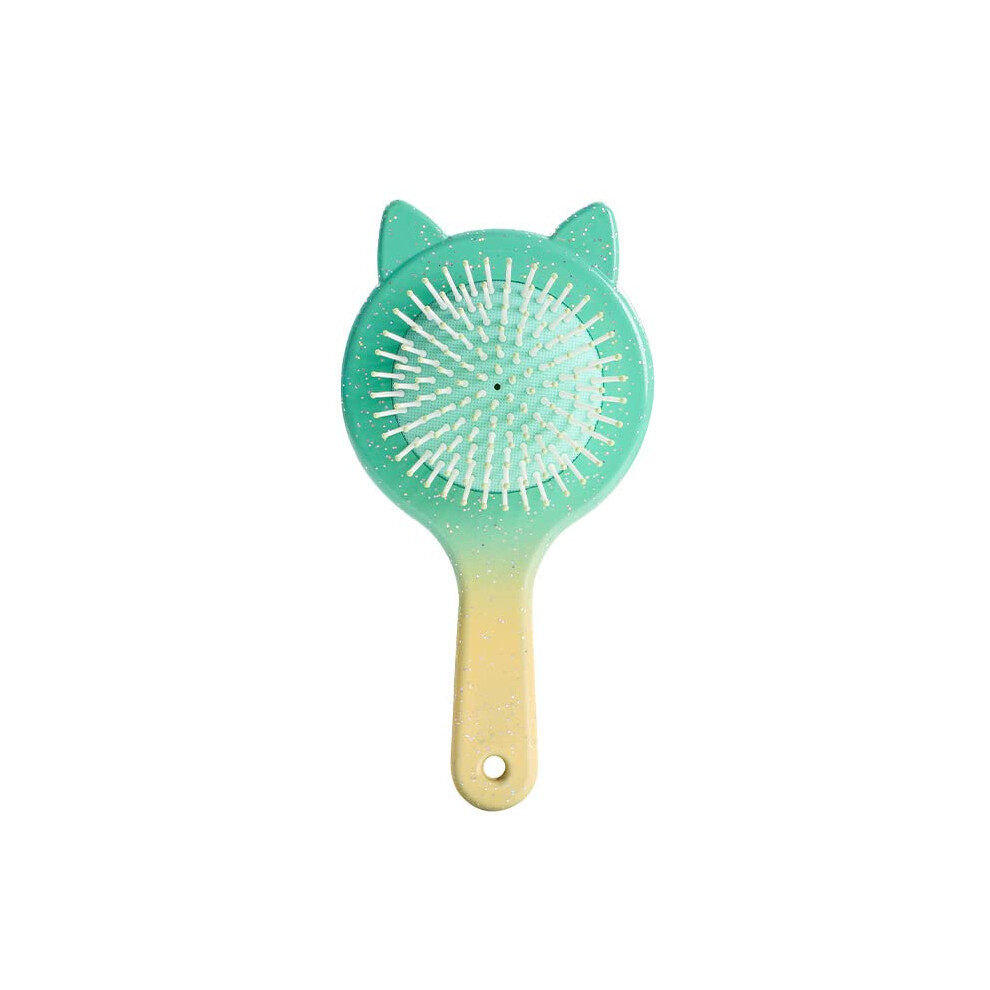 Detangler Hair Brush with Cute Cat Ears, AntiStatic Bristles, Gentle Knot Removal for Wet and Dry Hair, Compact Travel Size for Kids and Women, Green