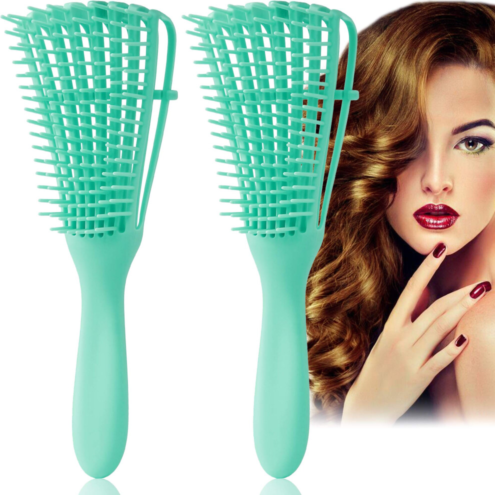 Detangling Brush for Curly Hair 3a to 4c, Knot Hair Detangler Comb for Wet Dry Thick Long Hair, 2 Pcs Green