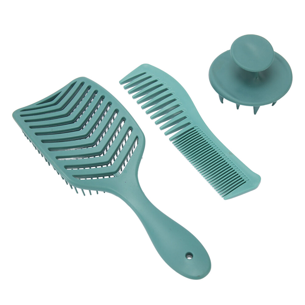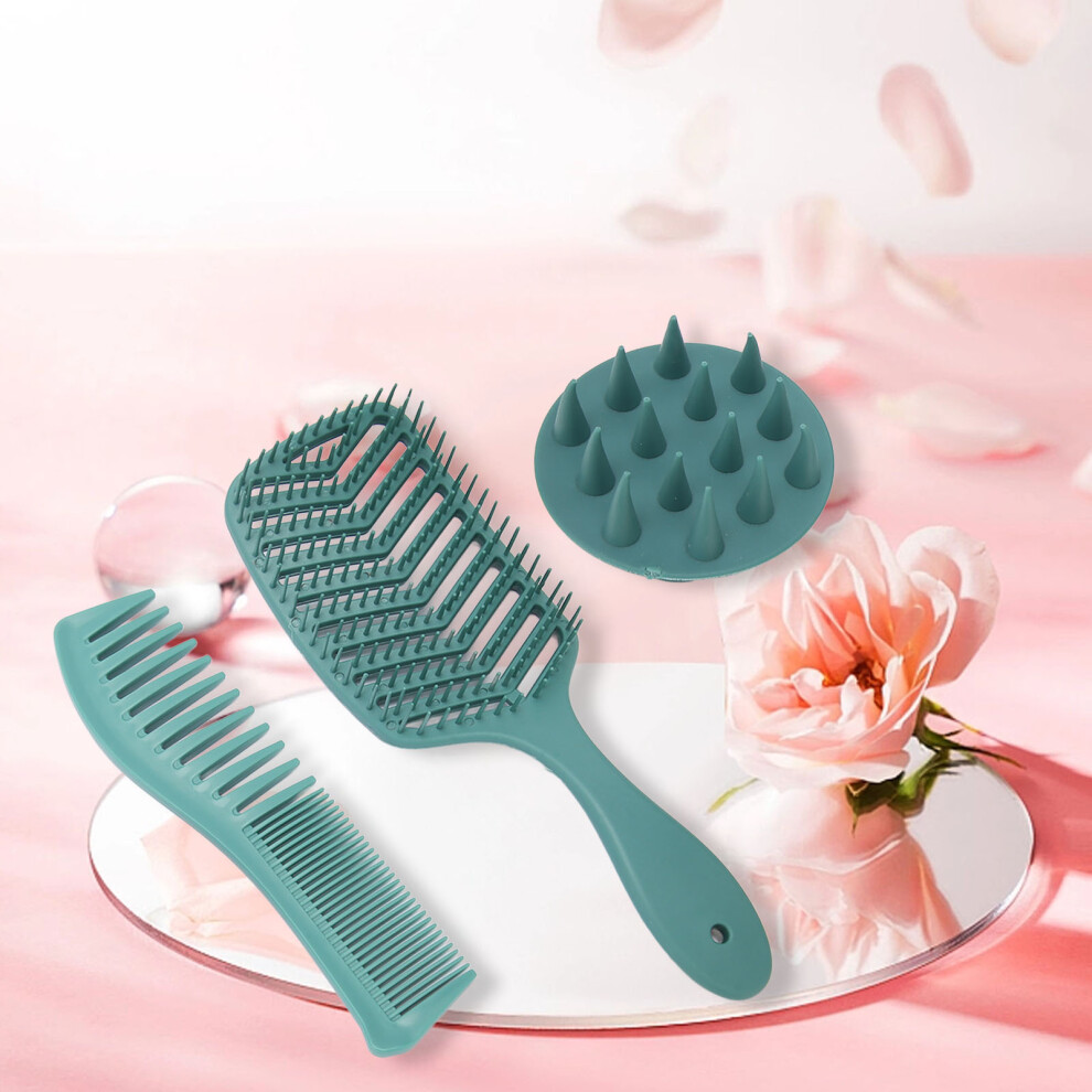 Hair Brush Comb Set Silicone Portable Detangler Hair Comb Set for Wet Dry Curly Hair Green