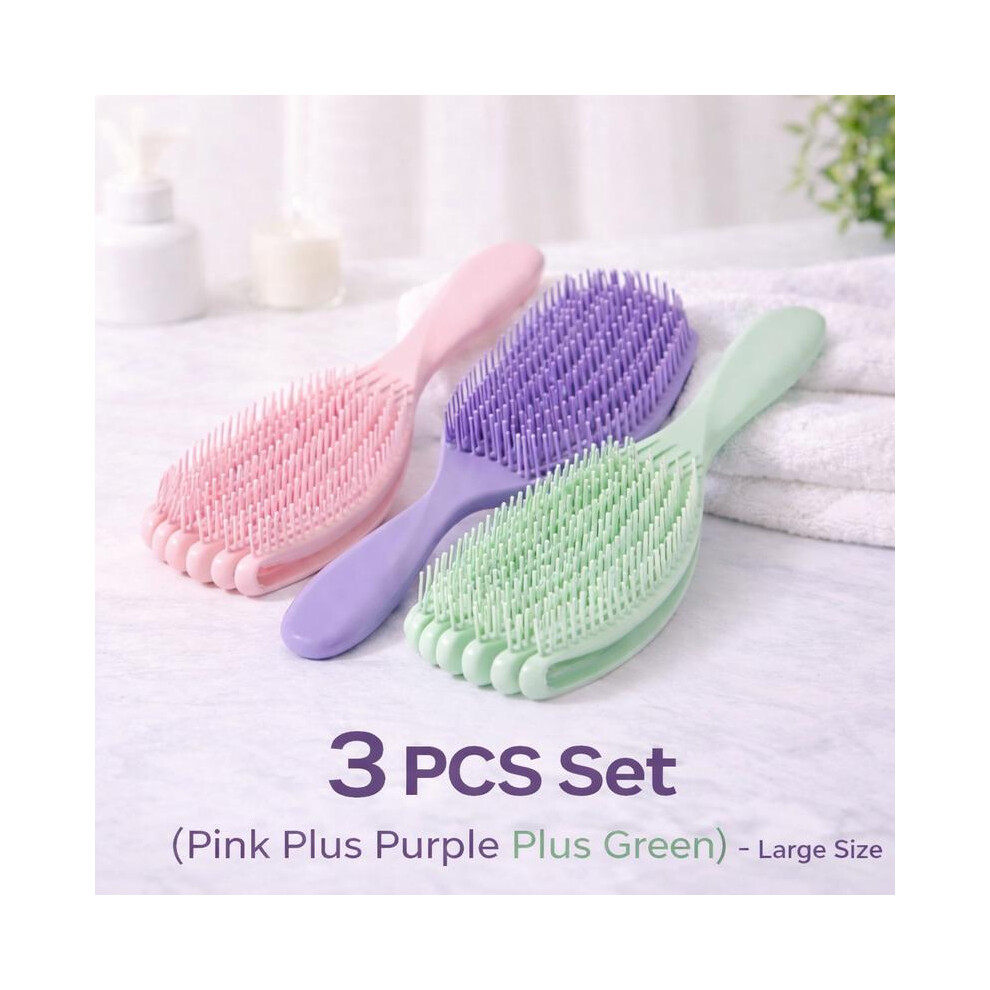 (3 PCS Set - Pink + Purple + Green) Detangling Brush Set (2PCS/3PCS) | Wet & Dry Hair Detangler + Shower Conditioner Brush for