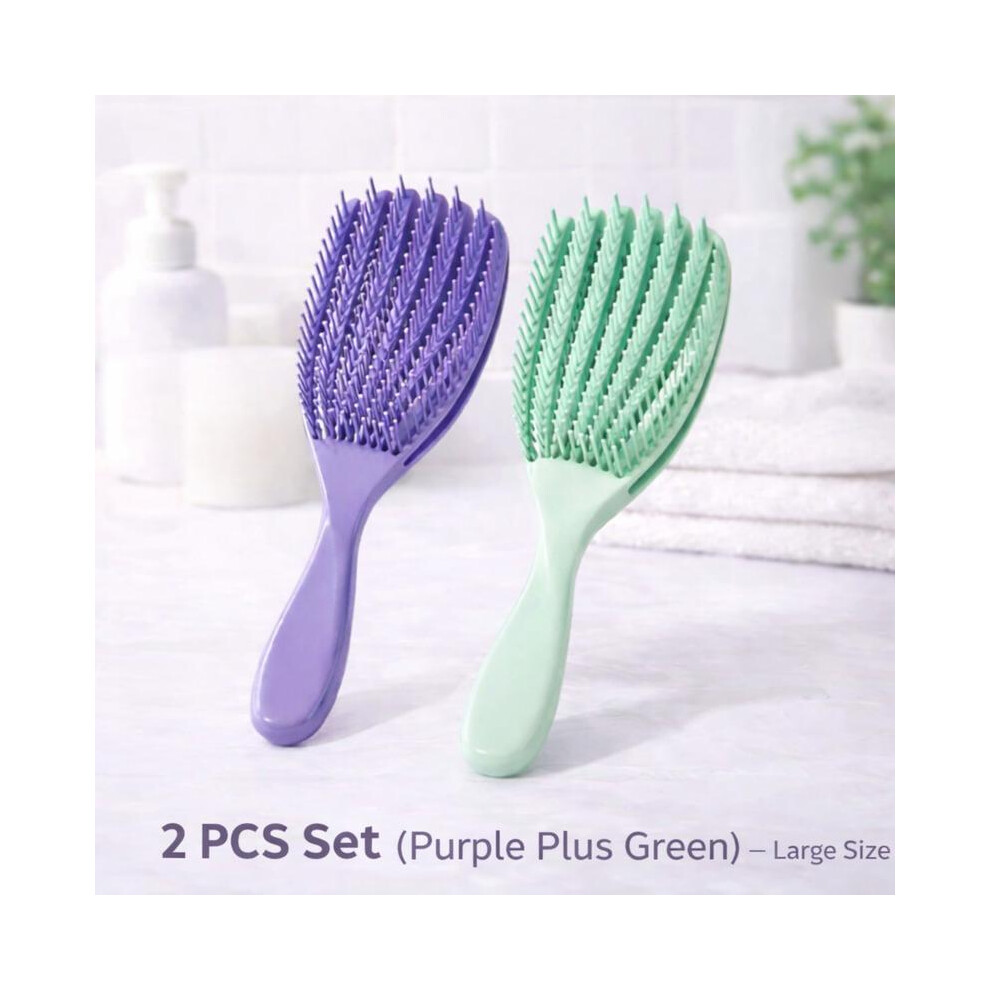 (2 PCS Set - Purple + Green (Large 23x7cm)) Detangling Brush Set (2PCS/3PCS) | Wet & Dry Hair Detangler + Shower Conditioner Brush for