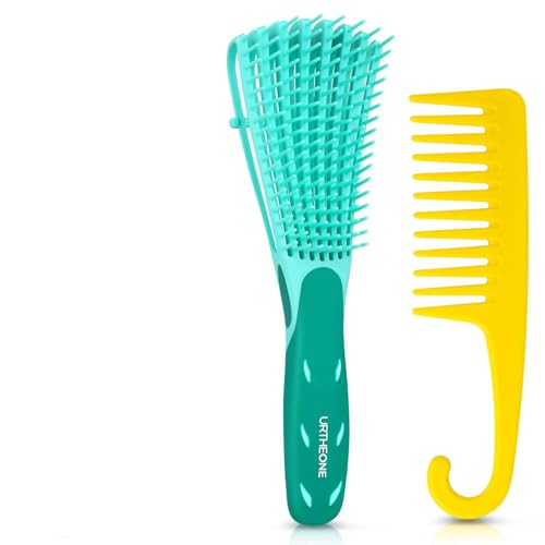 Detangling Brush, Curly Afro Texture, Ergonomic Handle for Wet or Dry Hair, Durable Detangler for Shiny Curls (Green) For Halloween Parties