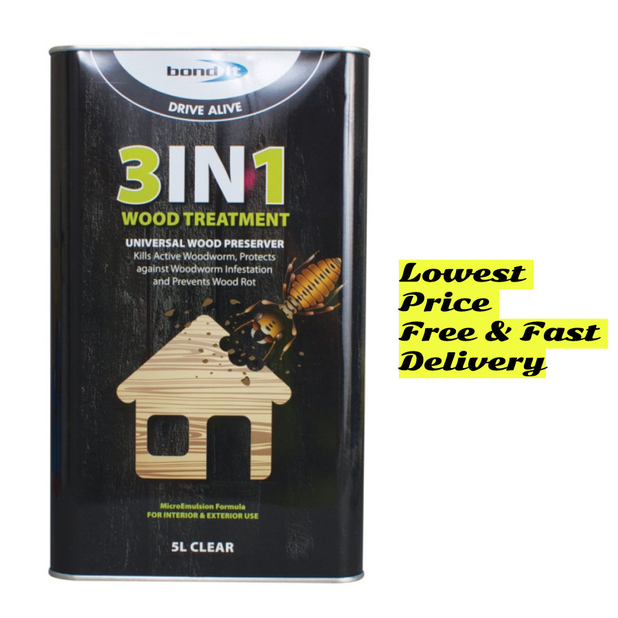 Bond IT 3 in 1 Action Wood Treatment | Preserver Dry & Wet Rot Decay | 5Litre