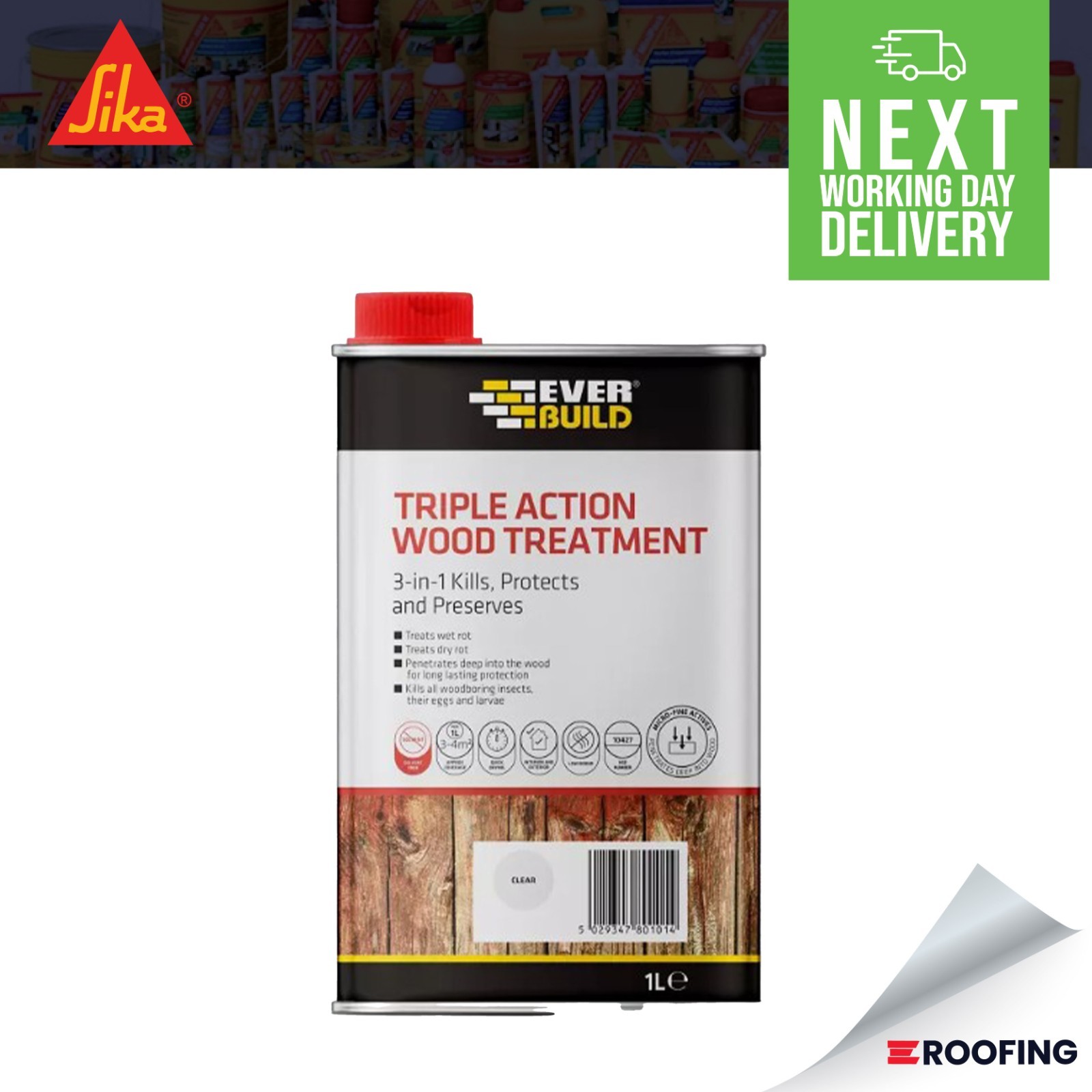 Everbuild Triple Action Wood Treatment, Wood Preserver, Dry & Wet Rot Decay 1LTR
