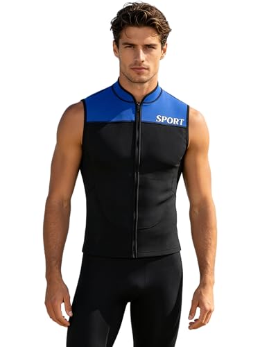 Choomomo Men Sleeveless Diving Suits Water Sports Front Zipper 3mm Rubber Wet Suit Top Surf Vest for Sailing Black Blue L