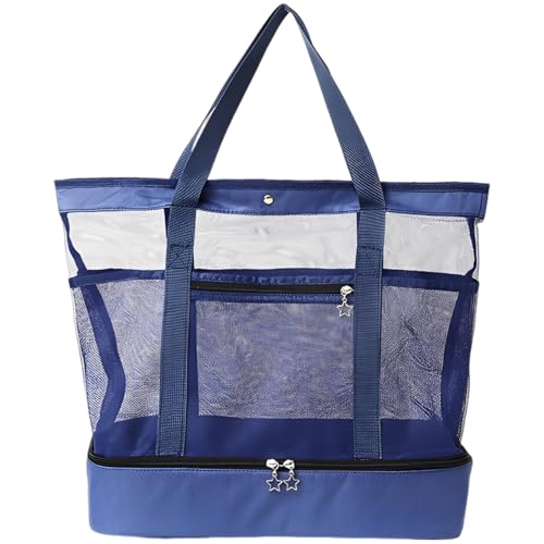 yeeplant Women Beach Bag, Capacity Large Dual Layer Tote Travel Wet Dry Separation, Top Mesh Sandproof, Bottom Waterproof, Organizer Gym Picnic Pool, Long-Lasting