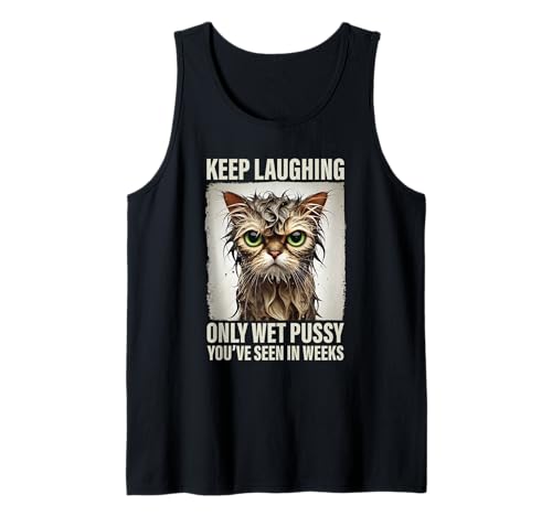 Funny Wet Pussy Meme Pun Keep Laughing Only Wet Pussy Tank Top
